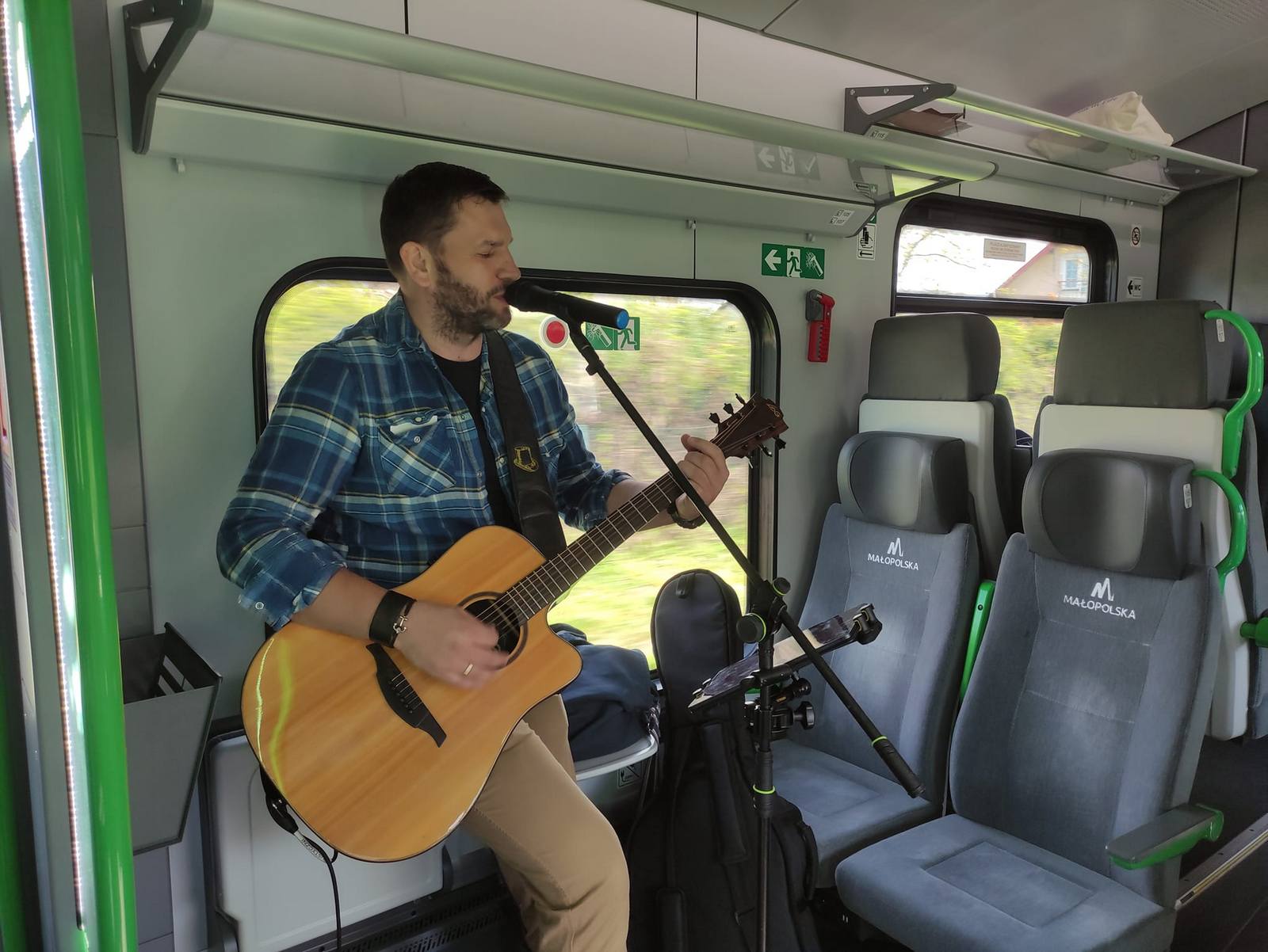 O godz. 10.28 uczestnicy imprezy razem z miłą obsługą Polregio oraz członkami Nowosądeckiego Stowarzyszenia Miłośników Kolei (partnerami akcji) wsiedli do pociągu, w którym rozpoczął się koncert Tomka Szołdrowskiego „Znowu jestem dziś w podróży”.
