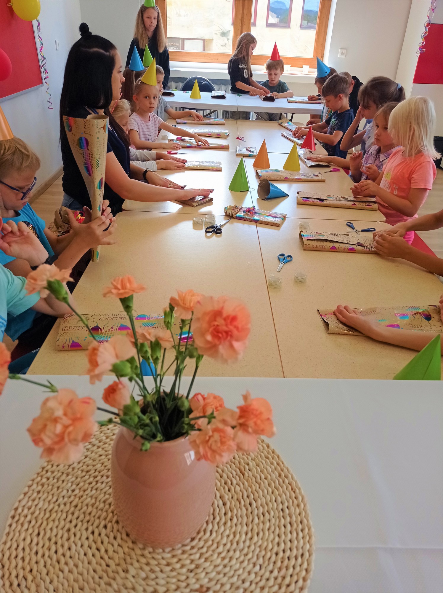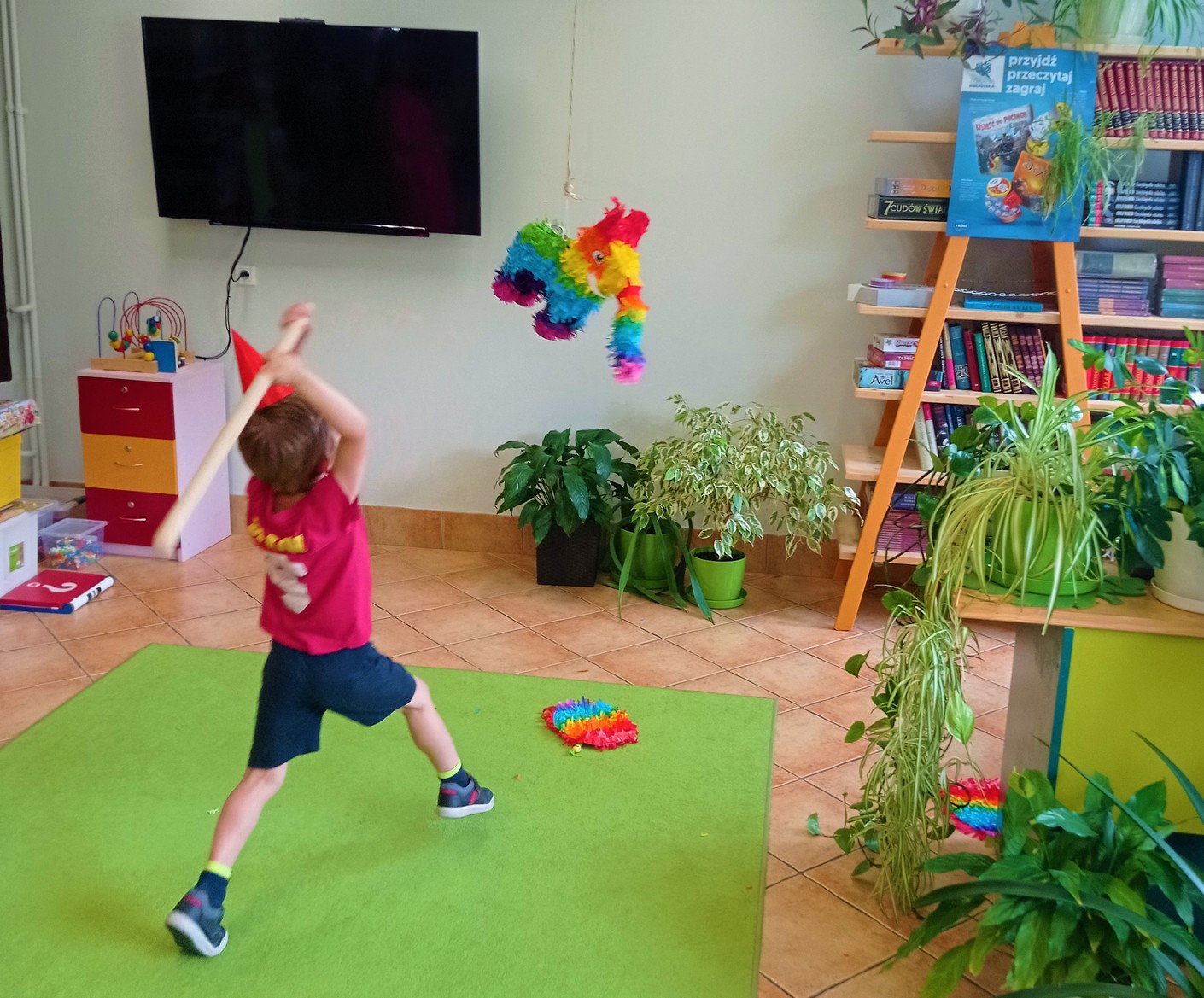 Zajęcia dla dzieci w wieku 6 – 10 lat w Oddziale dla dzieci i Młodzieży. Urodziny to bardzo ważny dzień dla każdego, dlatego trzeba je odpowiednio przygotować. W literaturze dziecięcej znajdujemy dużo książek o tematyce urodzin. Dzieci na zajęciach poznały przygody bohaterów, a następnie stworzyły dla nich przyjęcie. Nauczyły się przygotowywać dekoracje, nakrywać do stołu, pakować prezenty, obsługiwać gości. Było też sporo „urodzinowych” zabaw i niespodzianek, m.in. uwielbiana przez dzieci piniata.