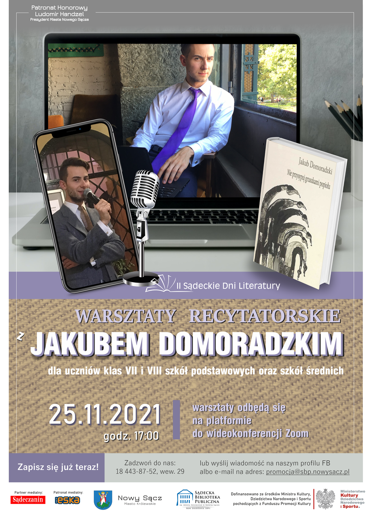 25 listopada br. o godz. 17:00 odbyły się warsztaty recytatorskie online dla młodzieży z Jakubem Domoradzkim.
