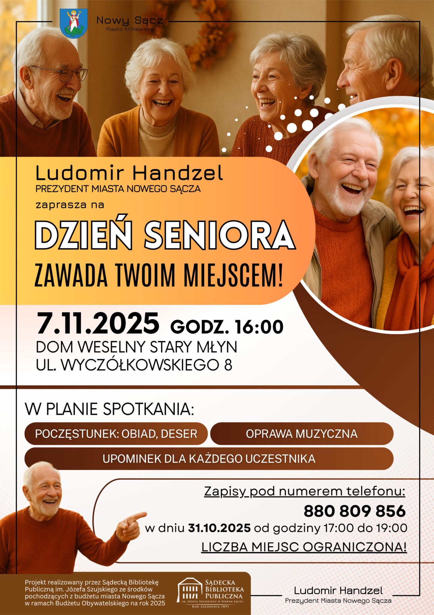 Prezydent Miasta Nowego Sącza Ludomir Handzel oraz Dyrektor Sądeckiej Biblioteki Publicznej Marek Rylewicz serdecznie zapraszają wszystkich Seniorów na wyjątkowe spotkanie z okazji Dnia Seniora organizowane w ramach projektu „Zawada Twoim miejscem!” .