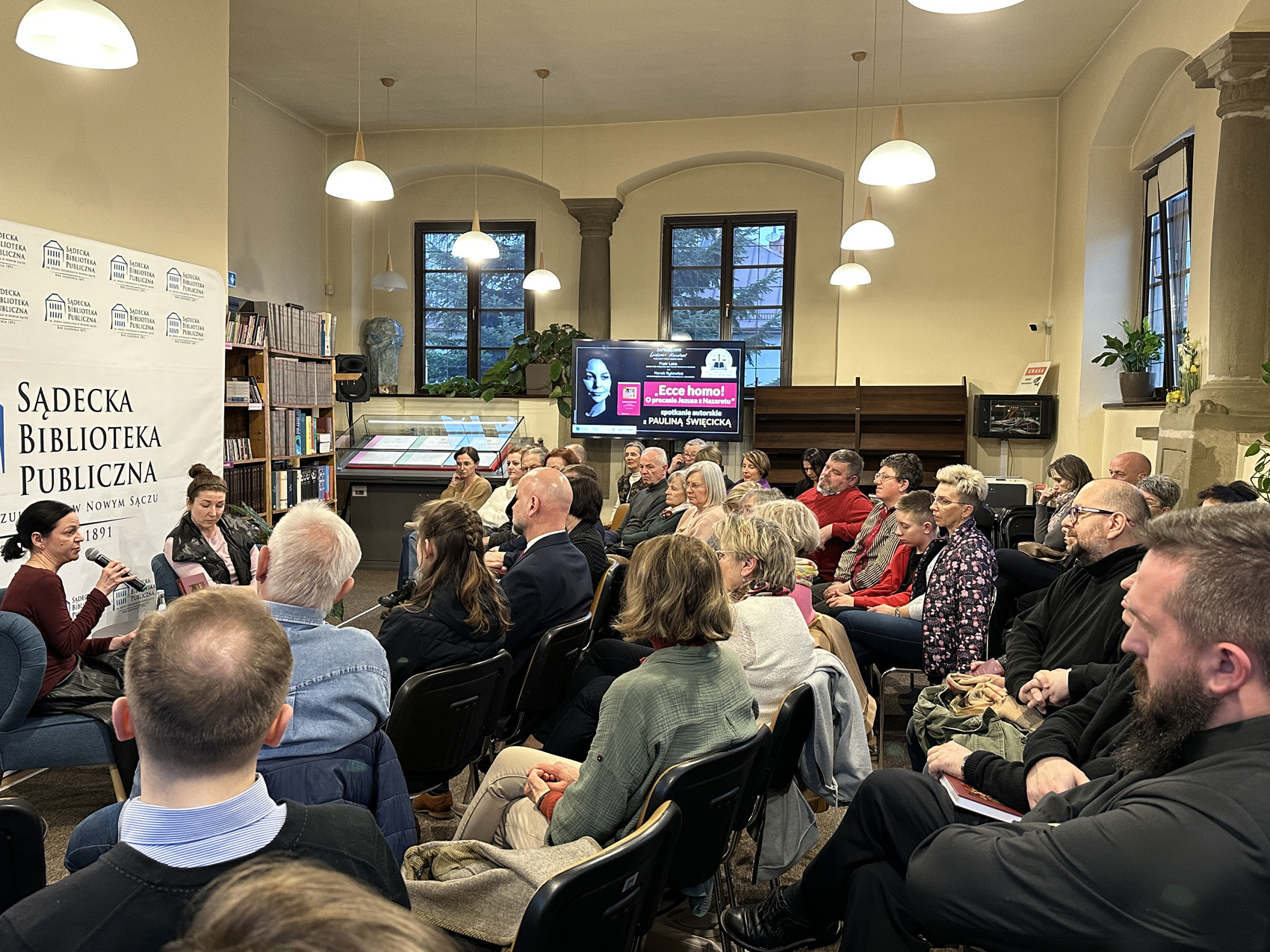 27 marca 2025 r. w czytelni biblioteki głównej odbyło się kolejne spotkanie z cyklu „Indeks Ksiąg Zalecanych czyli Prawo do Kultury”, którego gościem była dr Paulina Święcicka – doktor nauk prawnych i autorka książki „Proces Jezusa w świetle prawa rzymskiego”. Tematyka spotkania w całości poświęcona była tejże publikacji – autorka przedstawiła analizę procesu Jezusa w świetle norm rzymskiego prawa karnego materialnego i procesowego.
