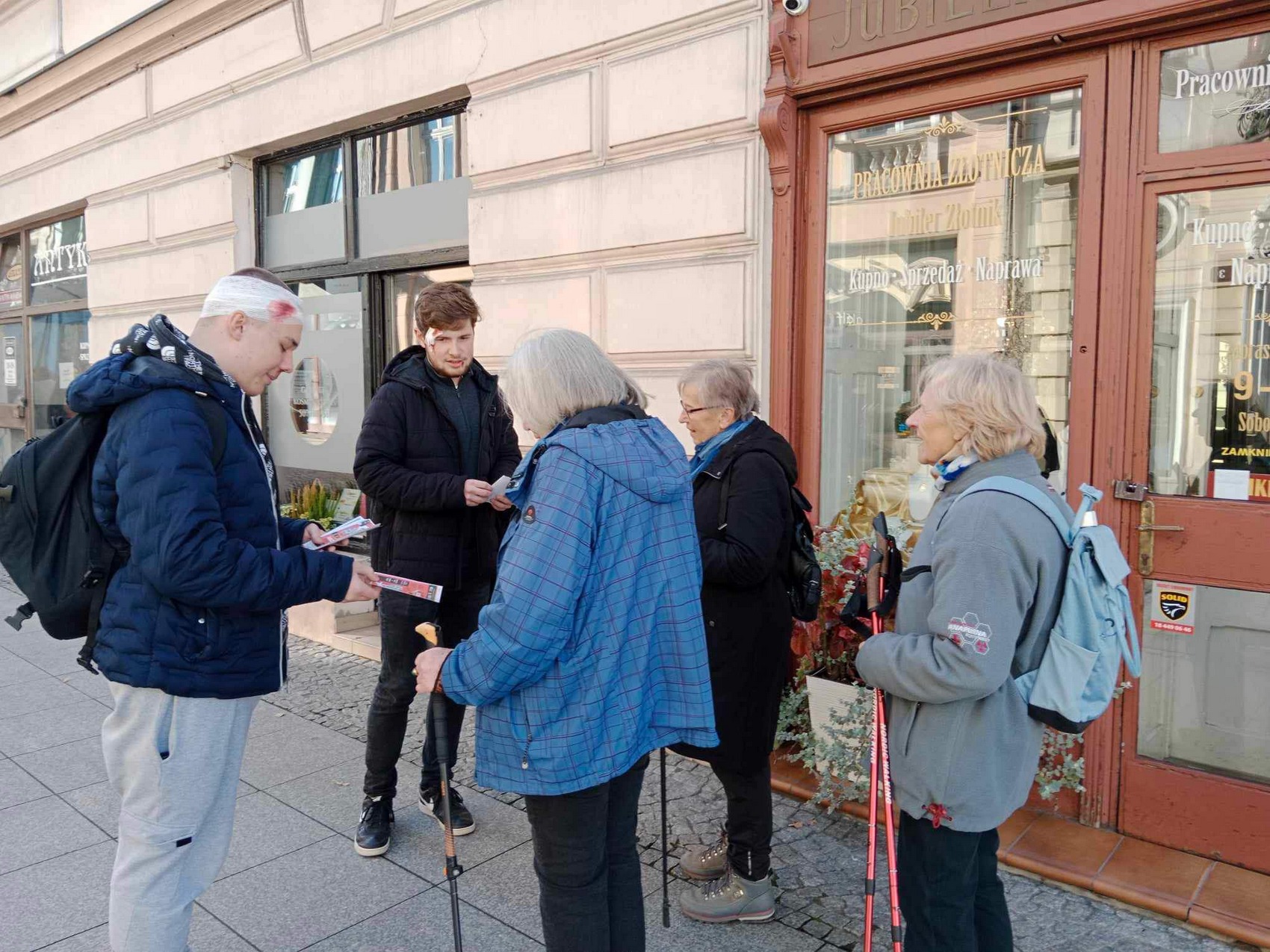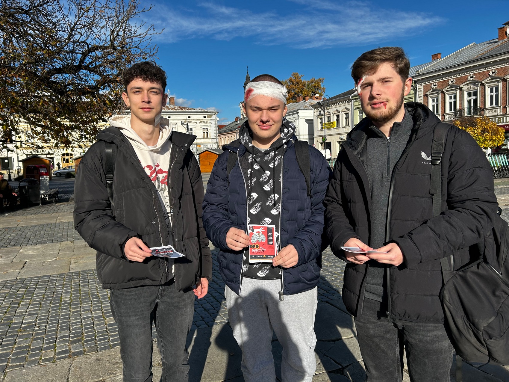 13 listopada 2023 r. na wybranych ulicach Nowego Sącza spotkać można było rannych uciekinierów, którzy promowali z nami zbliżające się wydarzenia Sądeckich Dni Literatury. Ucharakteryzowani na pobudzonych zranionych bohaterów książek kryminalnych młodzieńcy pozorowali scenki, w których potrzebowali pomocy. Zatroskanym przechodniom, którzy pytali, czy nie potrzebują pomocy, wręczali ulotki zapraszające na wydarzenie o sądeckiej historii z dreszczykiem „Co knują sądeccy historycy” oraz na spotkanie autorskie z Alkiem Rogozińskim. Happening z pewnością zapadnie wielu w pamięci i zachęci do odwiedzenia biblioteki.