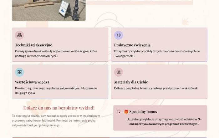 Wykład „Zadbaj o siebie! Aktywność fizyczna jako fundament dobrego samopoczucia” organizowany przez Towarzystwo Klawiterapii.