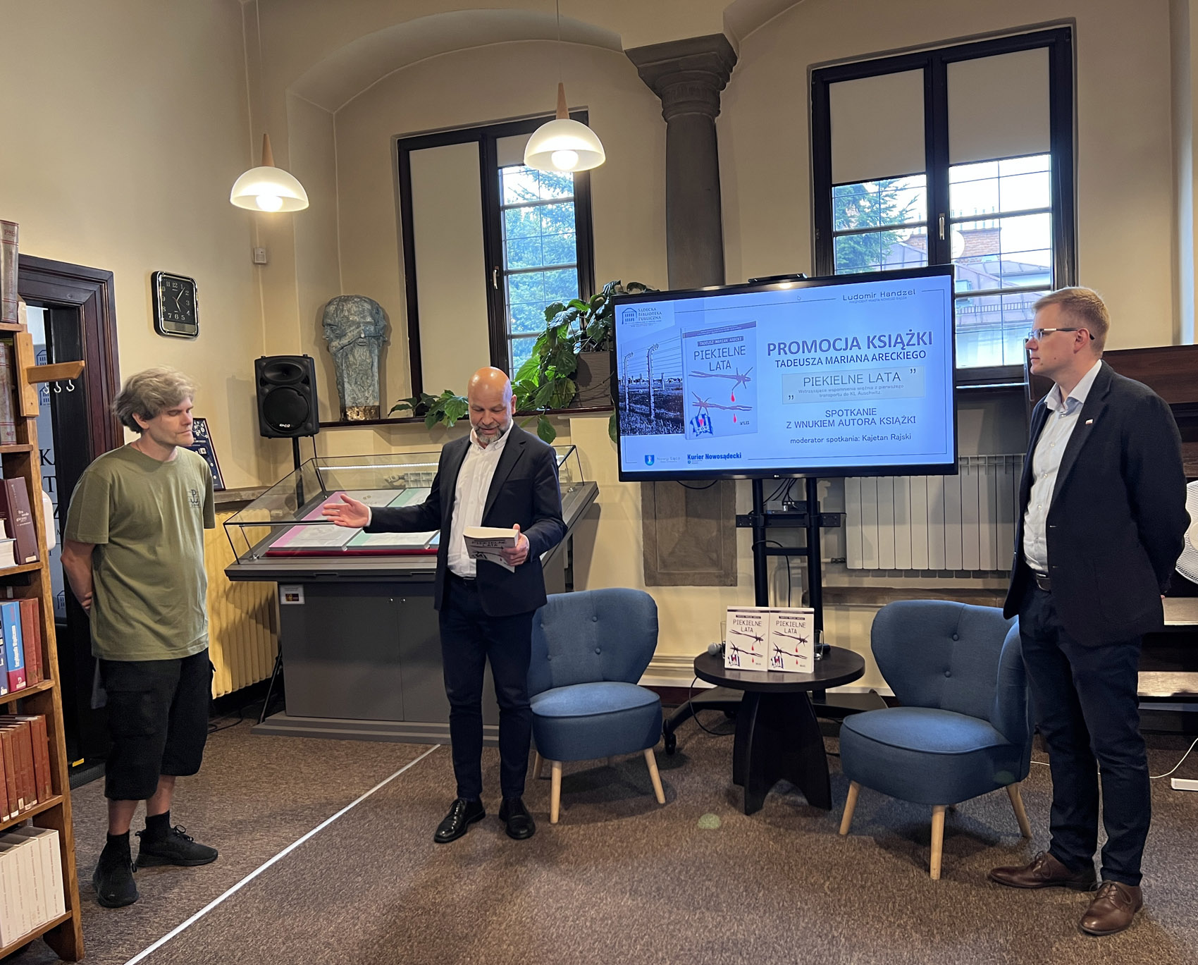 28 lipca 2025 r. w czytelni głównej siedziby biblioteki odbyło się spotkanie promujące książkę „Piekielne lata” Tadeusza Mariana Areckiego. To wspomnienia autora z czasów wojny i okupacji, który współpracując z podziemiem niepodległościowym, w wieku 16 lat, został aresztowany w Krynicy-Zdroju przez niemieckie siły bezpieczeństwa i wysłany pierwszym masowym transportem do obozu koncentracyjnego Auschwitz. Otrzymał tam numer obozowy 409.