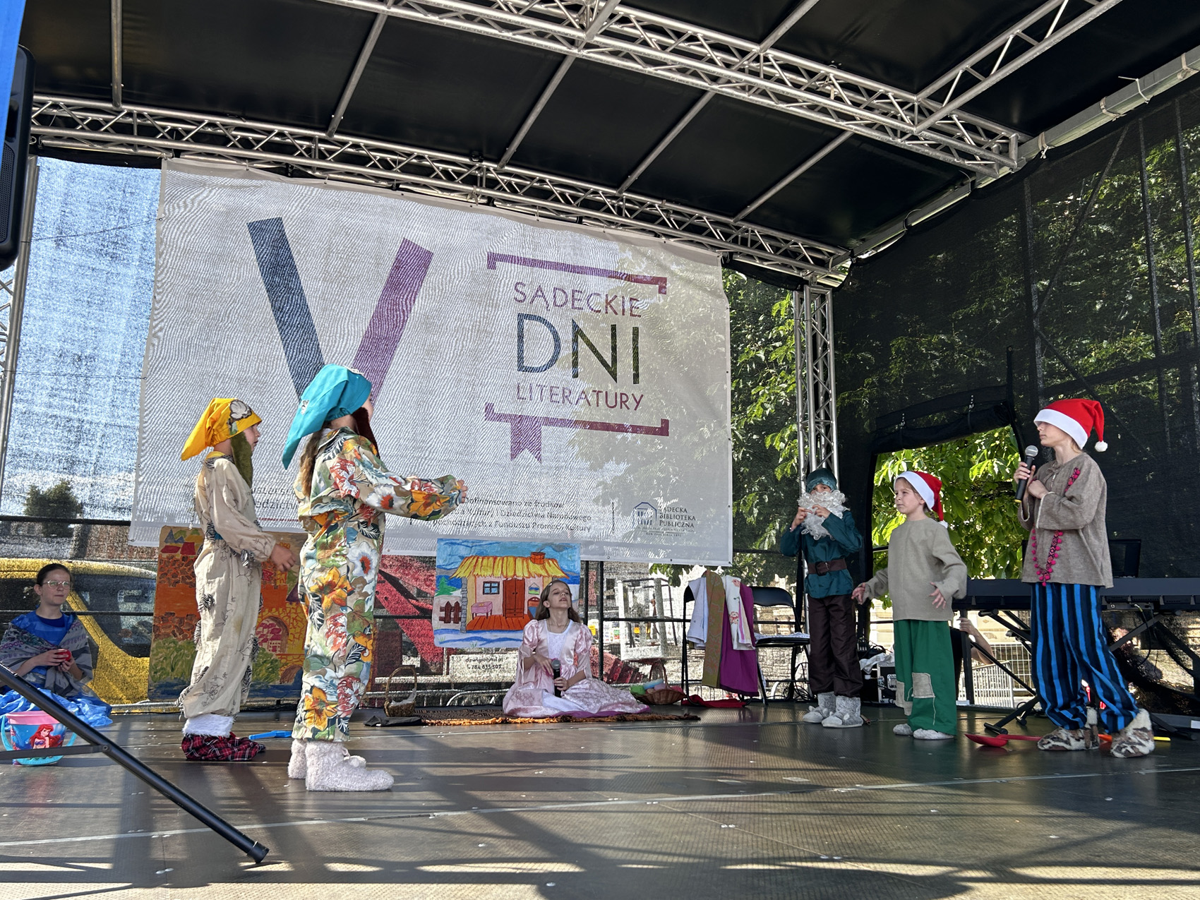 6 czerwca 2024 r.o godz. 9:00 na scenie na płycie nowosądeckiego Rynku przedstawieniami dla najmłodszych rozpoczęły się główne trzydniowe obchody V Sądeckich Dni Literatury. Najmłodsi uczestnicy literackiego święta w mieście obejrzeli przygotowany przez dziecięcą grupę teatralną Leśne Duszki spektakl „W krainie baśni” oraz przedstawienie „Taniec Motyla” przygotowany przez wychowanków Stowarzyszenia Rodziców i Przyjaciół Dzieci Niepełnosprawnych Ruchowo i Umysłowo „Nadzieja”.