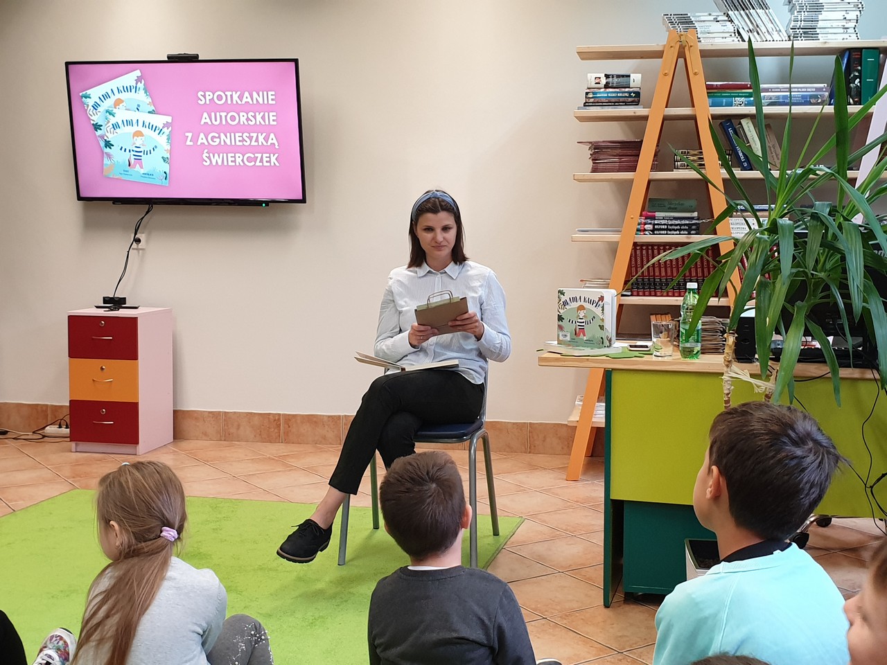 Autorka przeczytała napisaną przez siebie książeczkę, rozmawiała z dziećmi oraz wręczyła im torebki na REprezent… Co to takiego – dowiedzieć się można z książeczki „Mama kupi!… Książkę można pożyczyć w bibliotece.