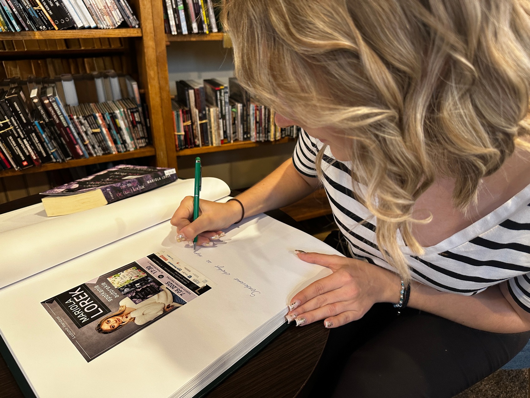 7 maja 2025 r. w bibliotecznej czytelni odbyło się spotkanie autorskie z Mariolą Lorek, autorką bestsellerowych książek z gatunku young adult. Pisarka opowiedziała o swoim warsztacie pracy, początkach związanych z publikowaniem swej twórczości w sieci i planach (nie tylko pisarskich) na przyszłość.