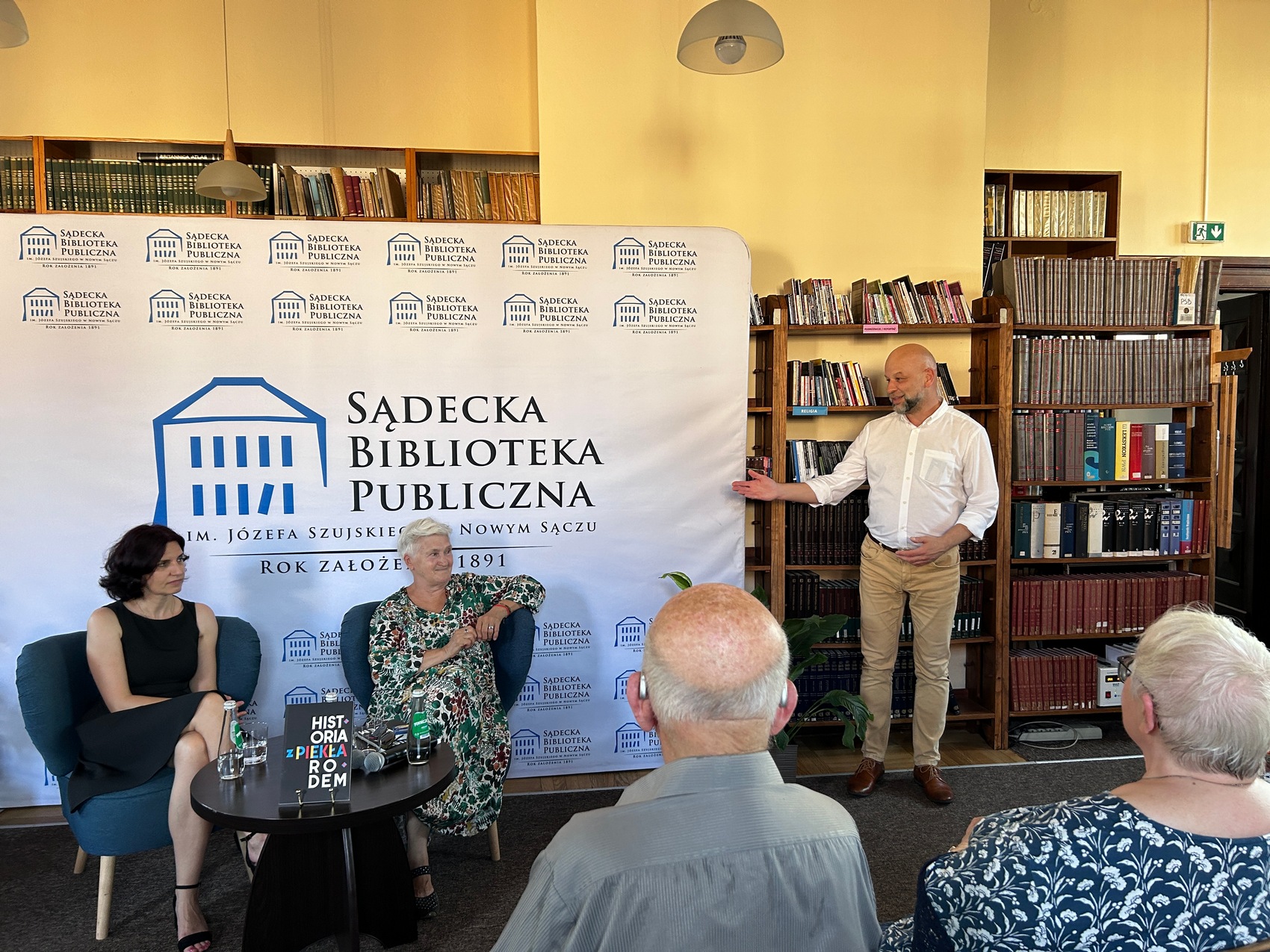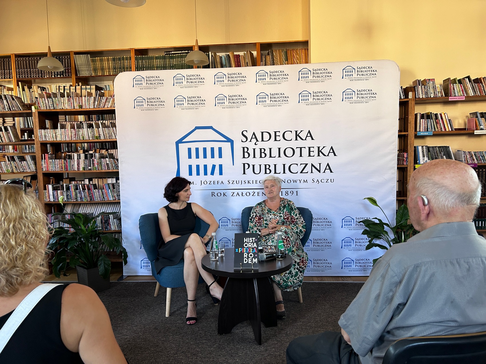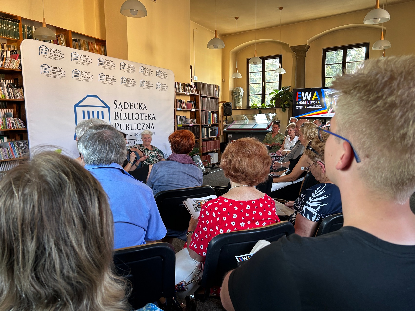 12 lipca 2024 r. w bibliotecznej czytelni miało miejsce spotkanie z Ewą Andrzejewską – sądecką autorką, animatorką i pasjonatką historii, która promowała książkę „Historia z Piekła rodem. Część 1” – wznowienie wydania z 2017 roku. Autorka utrwaliła na kartach papieru miasto już nieistniejące, ale wciąż tkwiące w pamięci mieszkańców, zwłaszcza starszego pokolenia. W książce ratuje od zapomnienia wspomnienia mówione z sądeckiej dzielnicy Piekło. Pomysłodawczyni i realizatorka projektu „Historia z Piekła rodem” zaktywizowała lokalną społeczność i zapisała historię mówioną miejsca, które, podobnie jak warszawska dzielnica Praga, miało swoją odrębność i może stać się atrakcją turystyczną Nowego Sącza. O projekcie, którego efektem była promowana książka z Ewą Andrzejewską rozmawiała Edyta Ross-Pazdyk.