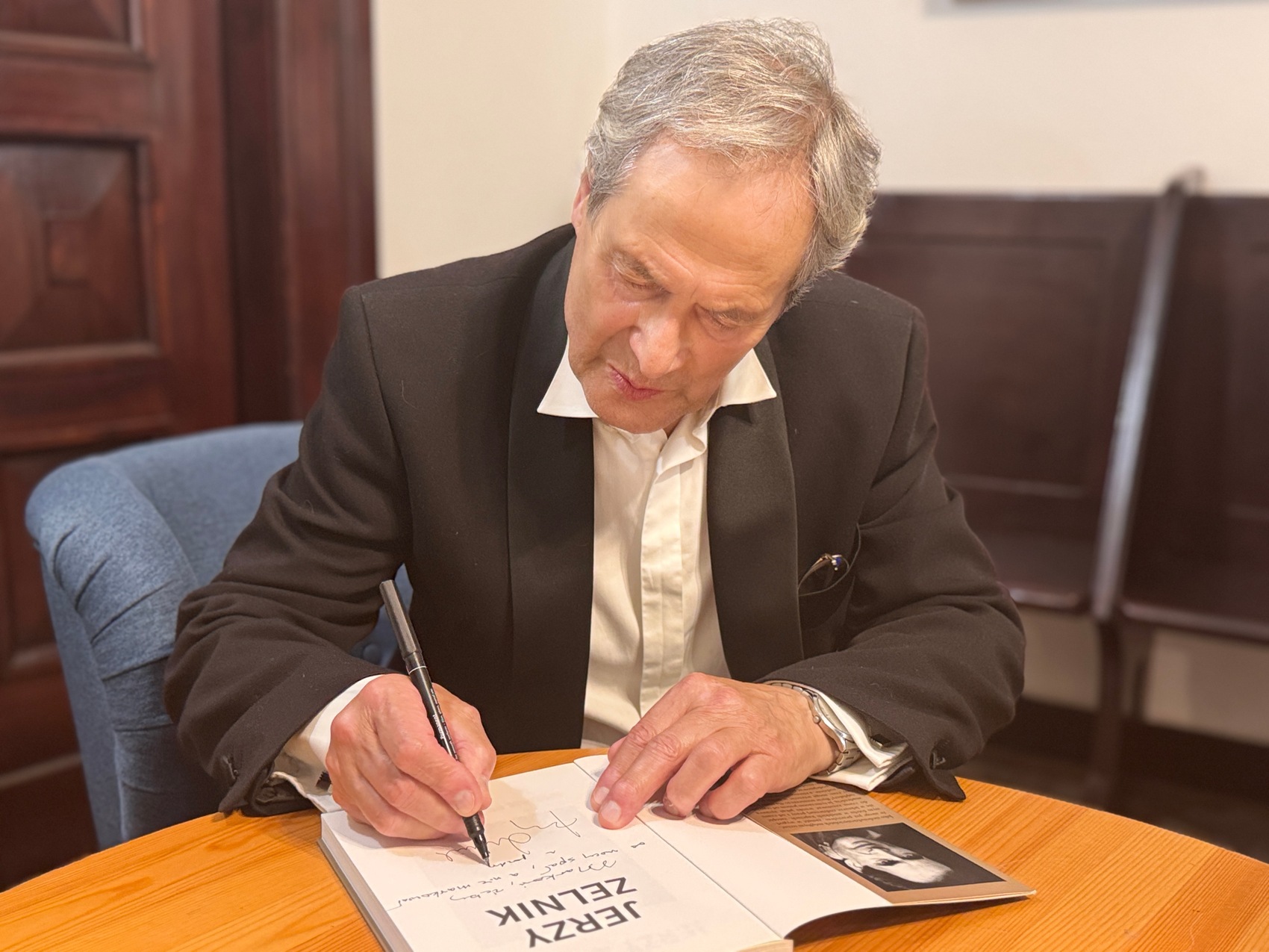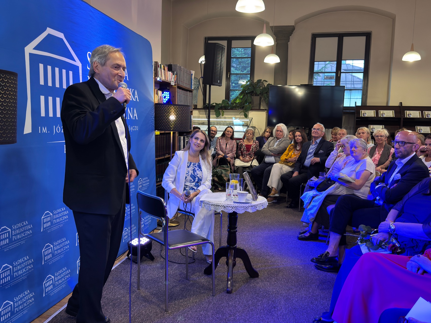 6 września 2025 r. w bibliotecznej czytelni odbyło się kolejne fascynujące spotkanie. Z czytelnikami biblioteki spotkał się Jerzy Zelnik – aktor teatralny, filmowy i telewizyjny, autor książki „Szczerze nie tylko o sobie”. Największą sławę przyniosła mu rola Ramzesa XIII i Lykona w ekranizacji powieści Bolesława Prusa „Faraon” (1965) w reżyserii Jerzego Kawalerowicza, która już w młodym wieku uczyniła go jednym z najbardziej rozpoznawalnych aktorów w kraju. Aktor podzielił się z publicznością swoimi doświadczeniami z pracy w świecie kultury, zdradził jak zachować młodość ducha i realizować się każdego dnia zarówno w życiu zawodowym jak i osobistym. Aktor opowiedział o swojej drodze artystycznej, wyzwaniach jakie stawiała przed nim sztuka oraz o inspiracjach, które towarzyszyły mu przez lata kariery. Artysta skupił się też autobiografii „Szczerze nie tylko o sobie”, w której dzieli się wspomnieniami i osobistymi refleksjami, wzbogaconymi szczyptą dowcipu i sporą dawką anegdot.