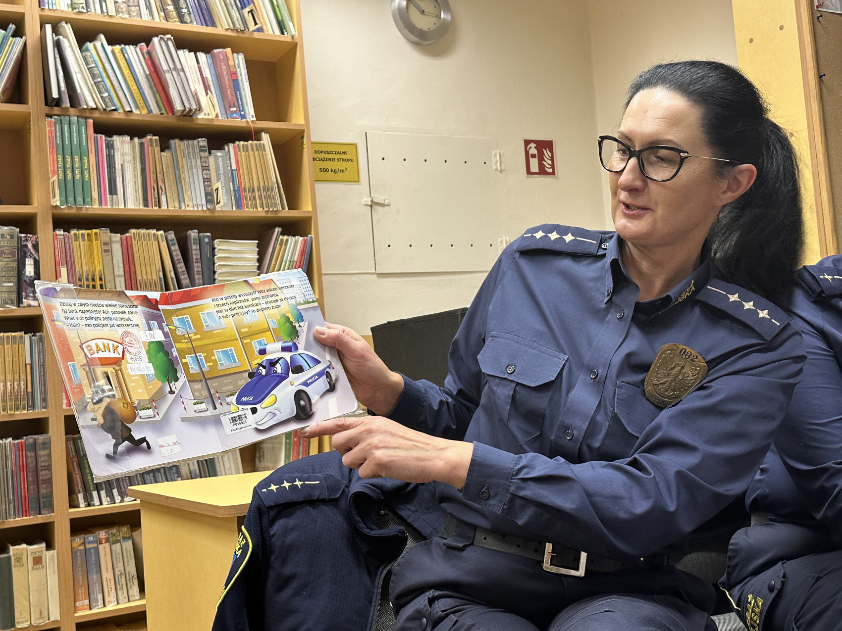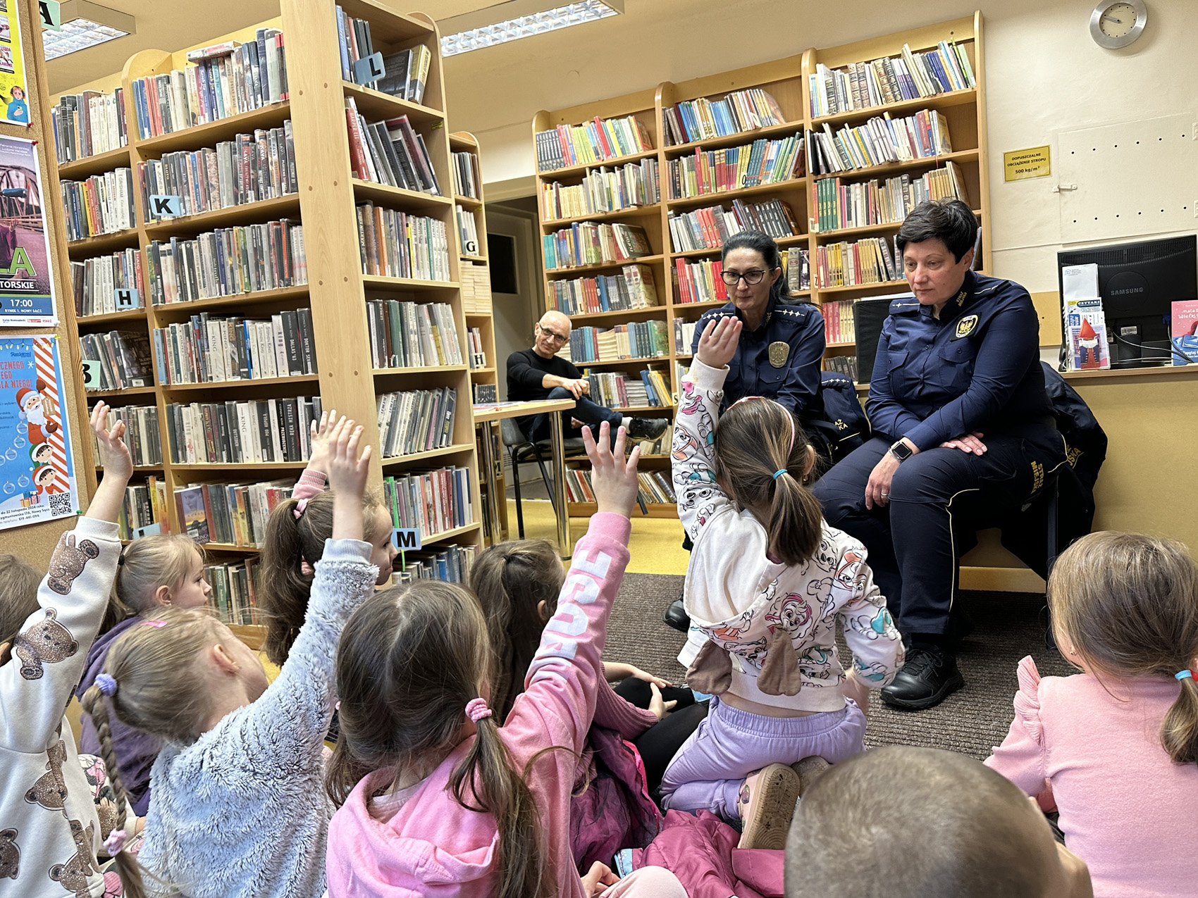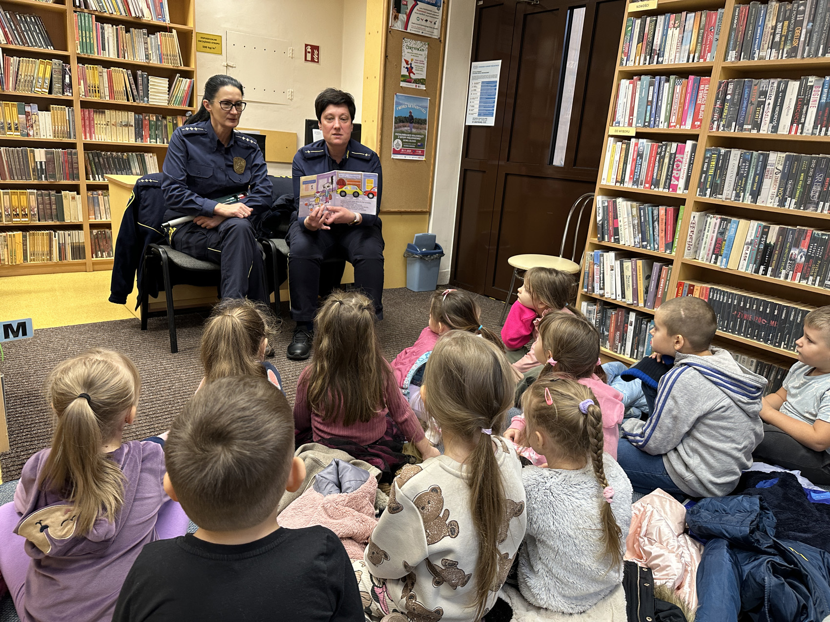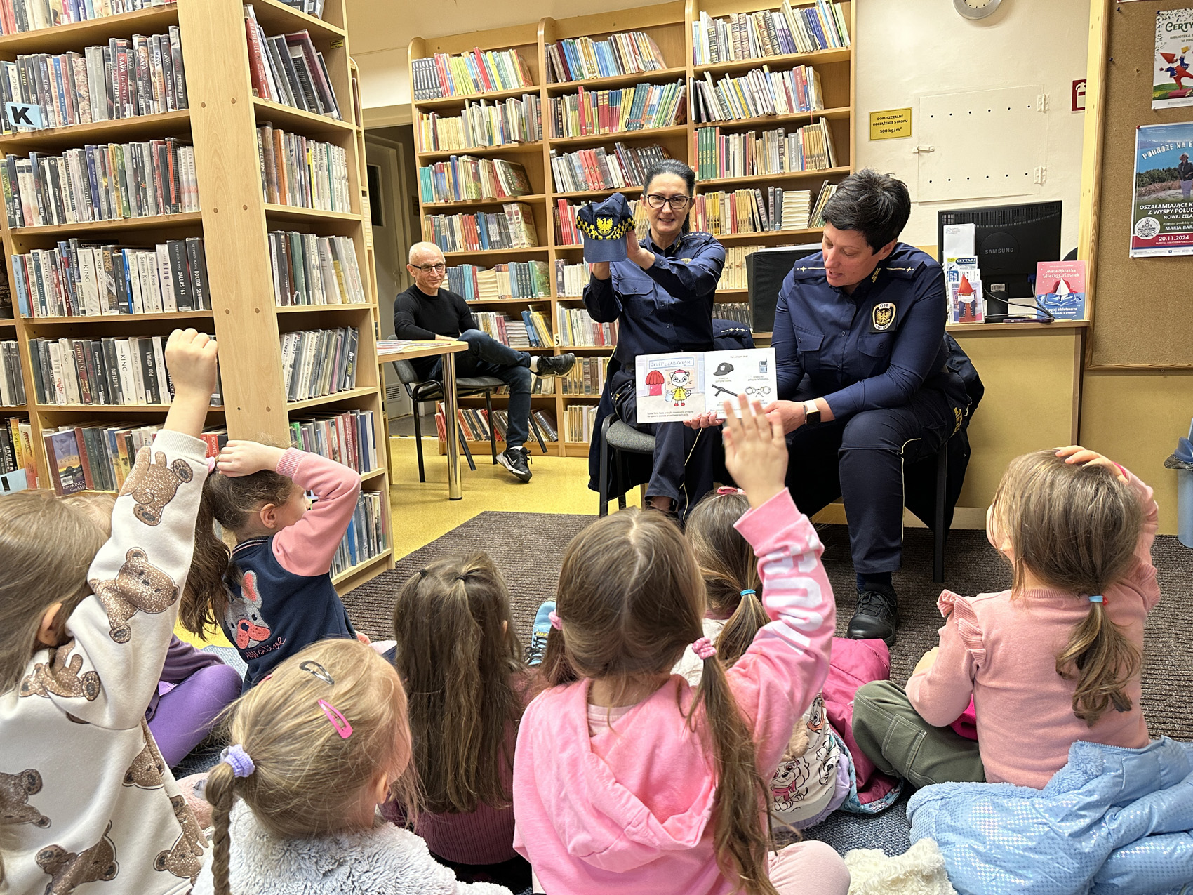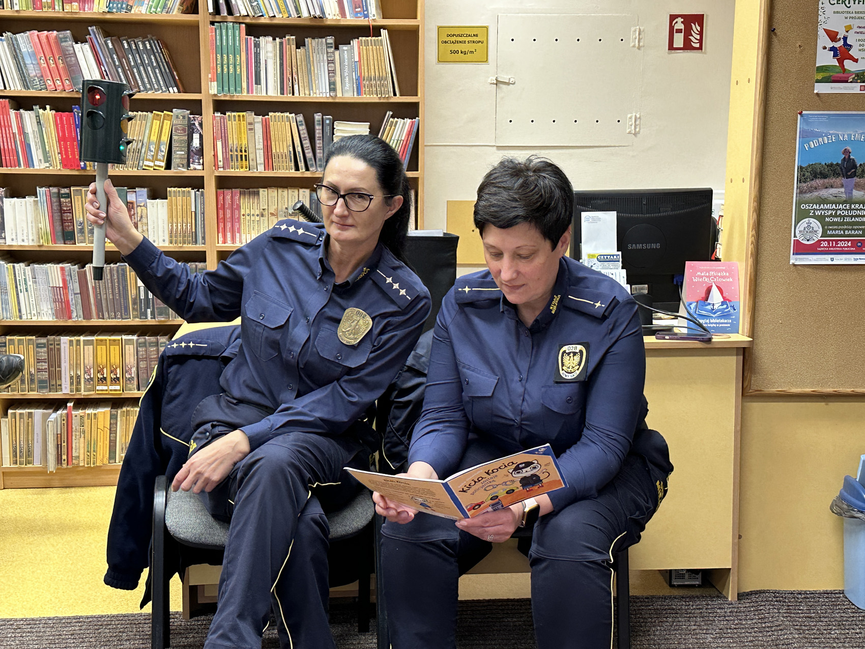 Panie ze Straży Miejskiej podzieliły się z dziećmi ciekawostkami związanymi z ich pracą oraz przeczytały fragmenty książek – nawiązujących tematycznie do spotkania.