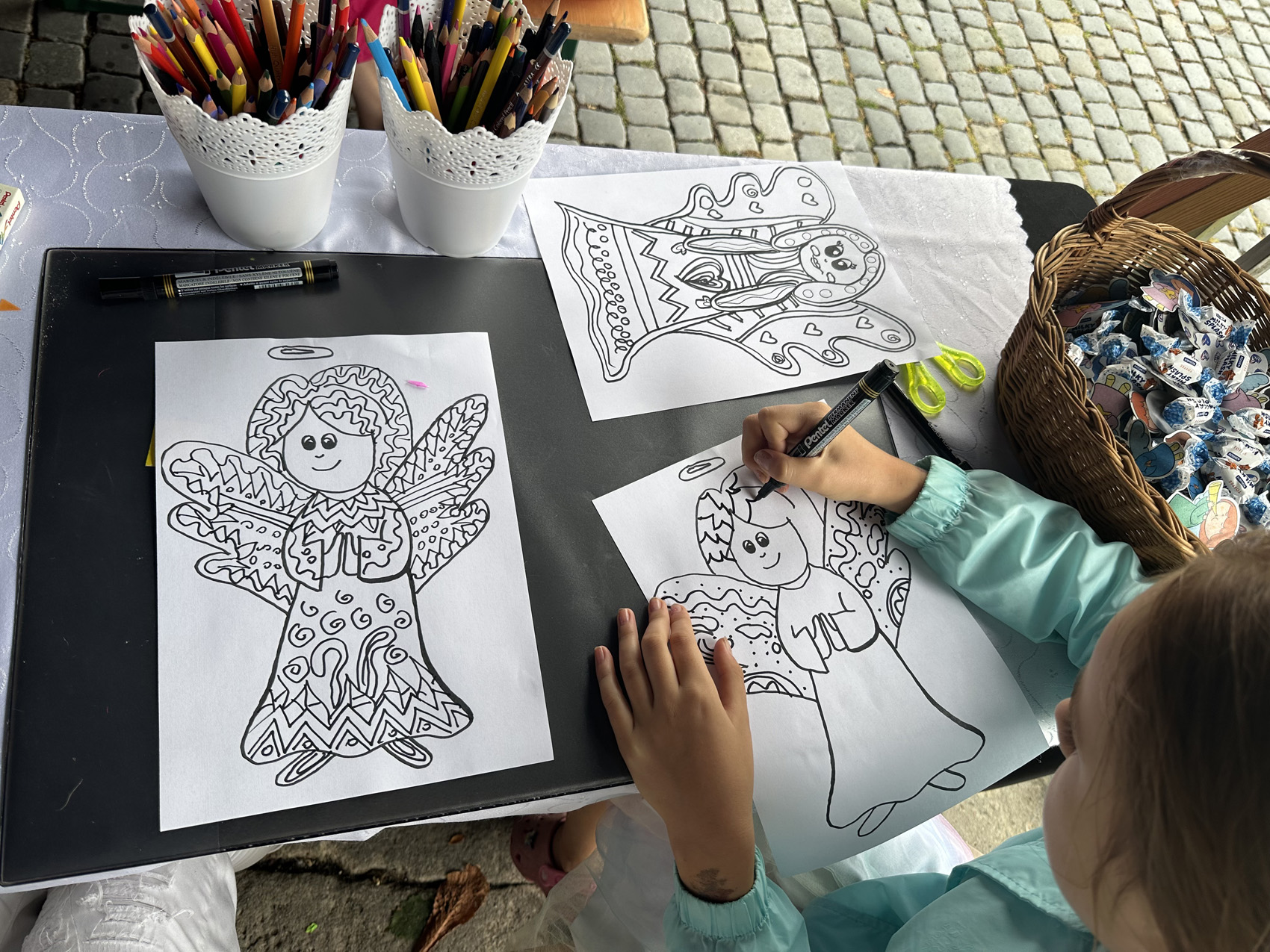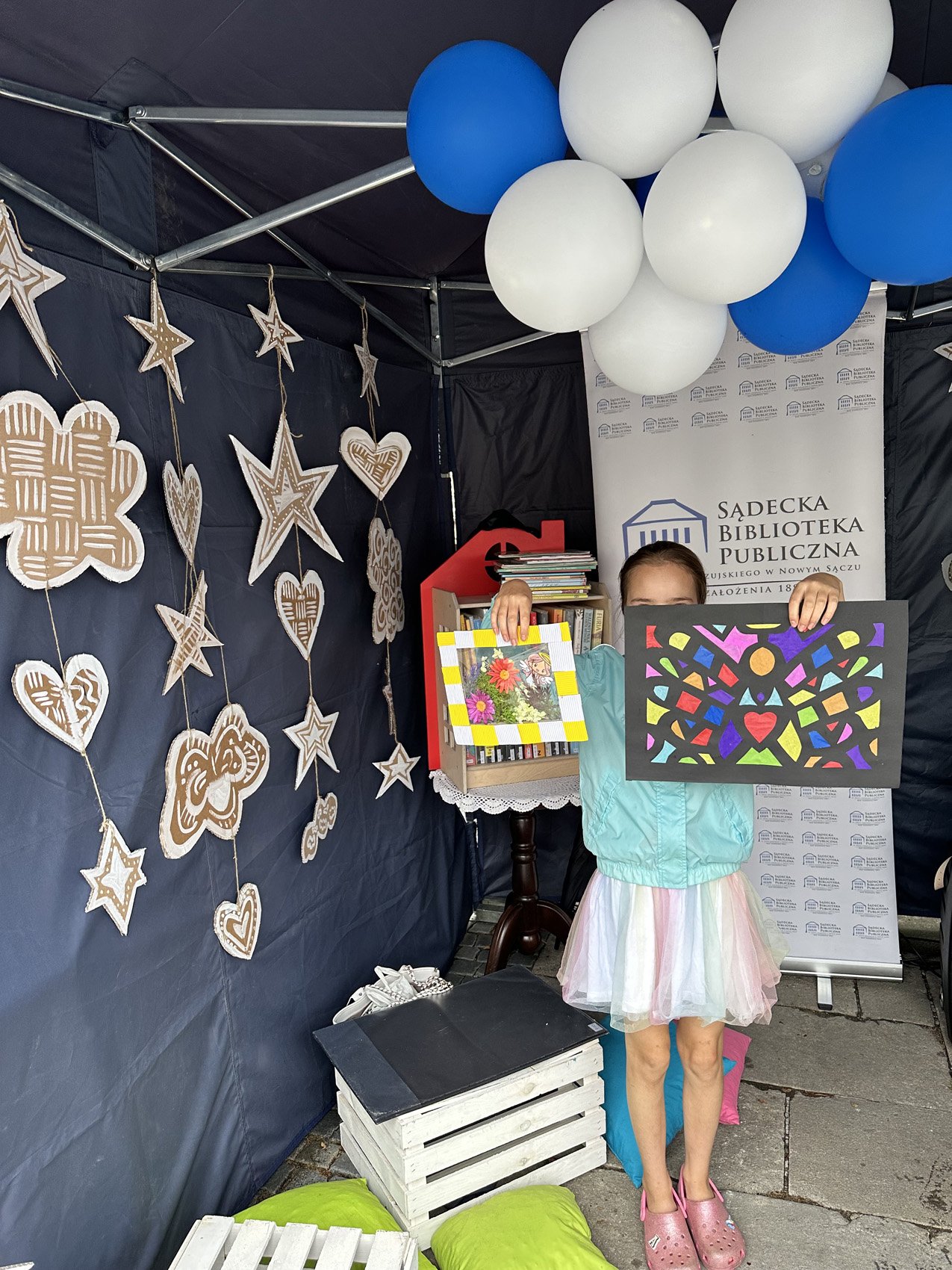 W stoisku Sądeckiej Biblioteki Publicznej odbywały się zajęcia literacko-plastyczne dla dzieci. Najmłodsi czytelnicy przygotowywali m.in. sielsko-anielskie ramki z kompozycjami kwiatowymi, anielskie witraże oraz kolorowanki antystresowe. W chwilach wytchnienia między zajęciami plastycznymi mogliśmy posłuchać bajkowych historii, które czytał Anioł. Jedną z atrakcji bibliotecznego stoiska była makieta z bibliotecznym aniołem – foto-ścianka, dzięki której każdy uczestnik mógł zamienić się w czytającego anioła.