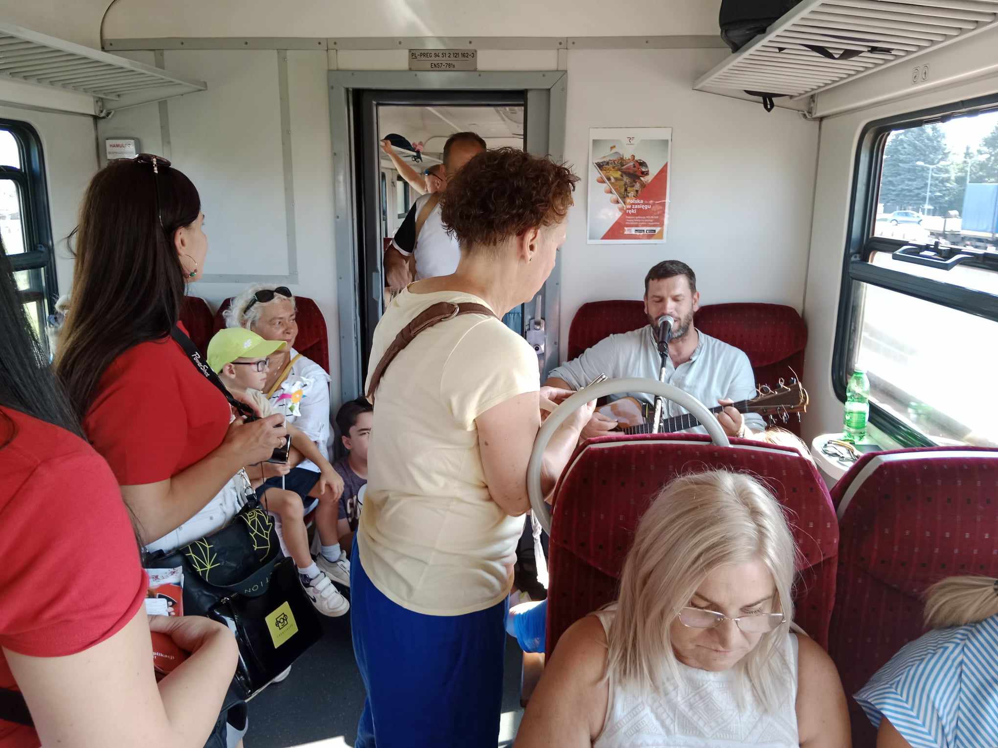26 sierpnia 2023 r. w ramach akcji podróżniczo-czytelniczej „Kolej na książkę, książka na kolej” miała miejsce niecodzienna przygoda – podróż specjalnym muzycznym pociągiem Polregio z Nowego Sącza do Piwnicznej-Zdroju i z powrotem. W pociągu odbywały się koncerty „Znowu jestem dziś w podróży…” Tomasza Szołdrowskiego. Droga upłynęła w wesołej atmosferze a podróżujący śpiewali znane szlagiery turystyczne razem z wykonawcą koncertu.